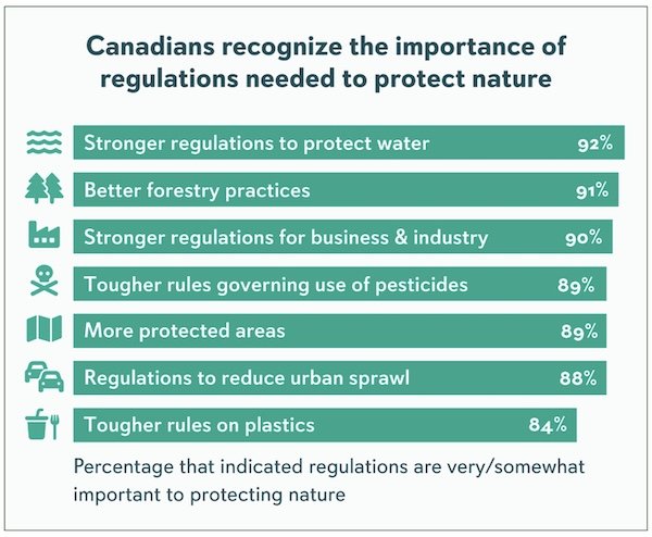 There is nonetheless a lot of common ground among Canadians when it comes to protecting nature, and perhaps even the makings of a large coalition in support of stronger regulations to protect nature, including many who may not be open to talking about climate action.