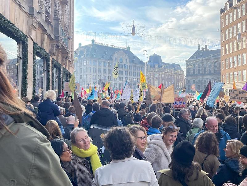 The incident came after tens of thousands of people marched through the streets of Amsterdam calling for more action to tackle climate change, in a mass protest just 10 days before national elections.