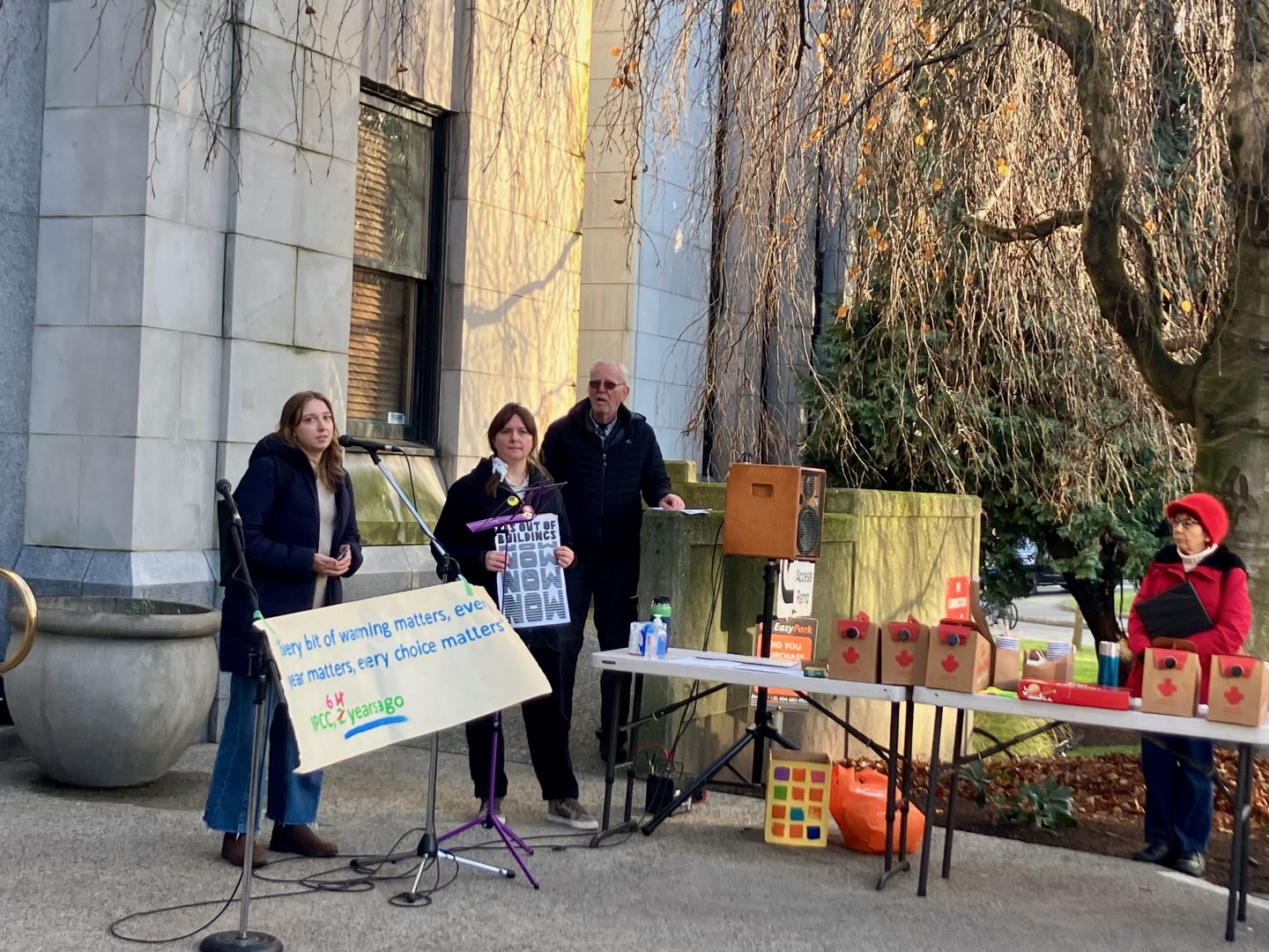 Advocates for the gas ban rallied outside Vancouver City Hall on November 26, ahead of a council vote on bylaw changes to permit gas heating in new homes. (Photo: Tova Gaster)